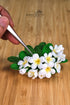 These miniature Plumeria flowers are incredibly versatile. They can be used as charming appliques on a variety of items like bags, hats, or garments, adding a touch of tropical flair. Alternatively, attach them to stems to create enchanting small arrangements that can brighten up any space, from your work desk to your living room.